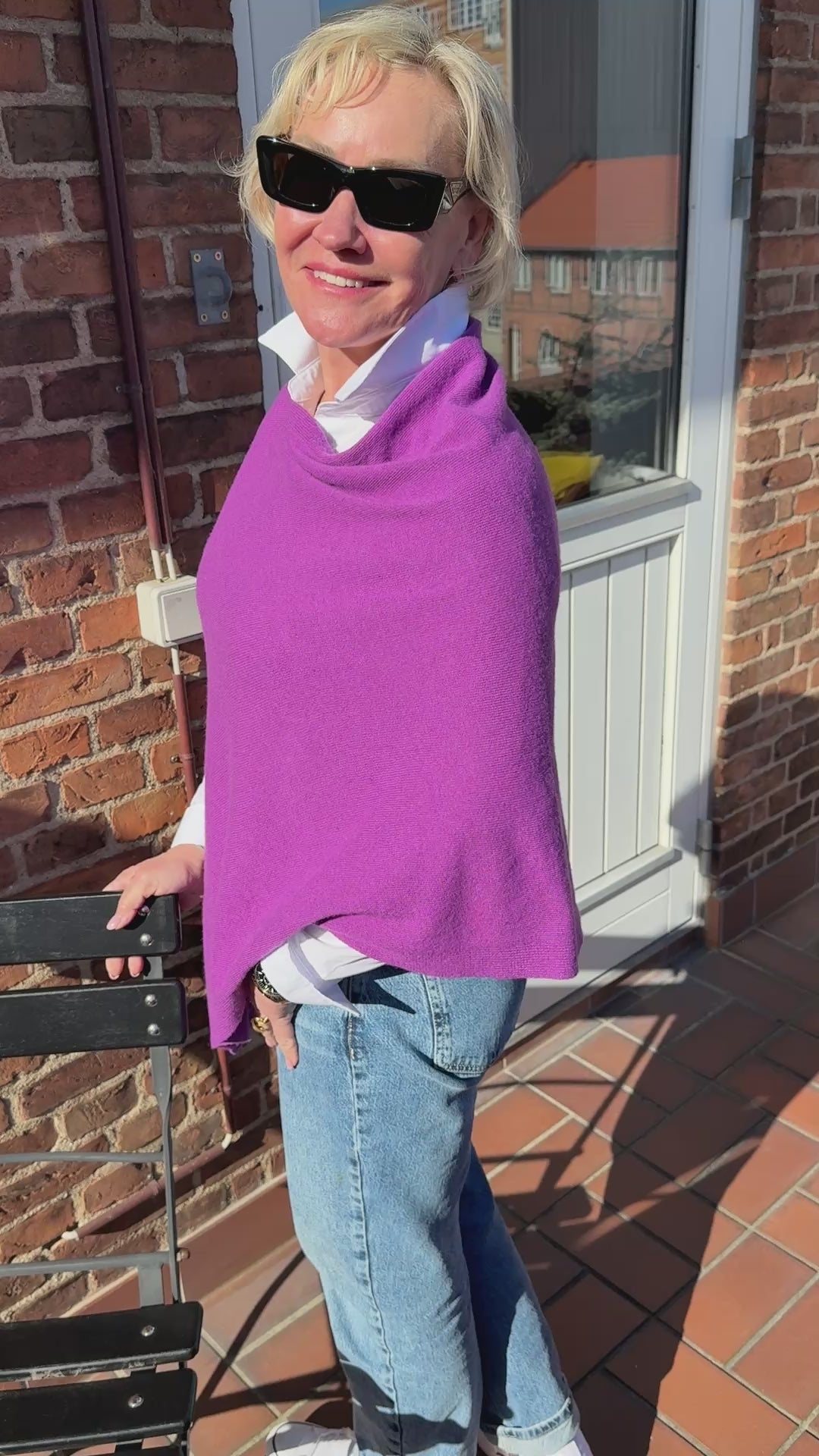 Denne eksklusive poncho er fremstillet i Italien af en luksuriøs blanding af 5% cashmere og 25% merinould. Med et blødt og elegant design giver den en let og varm fornemmelse, perfekt til både hverdagsbrug og særlige lejligheder. Cashmere og merinould sikrer enestående komfort, og kvaliteten er tydelig i hver eneste fiber. Ponchoen er skabt til at tilføre enhver garderobe et tidløst og sofistikeret look.