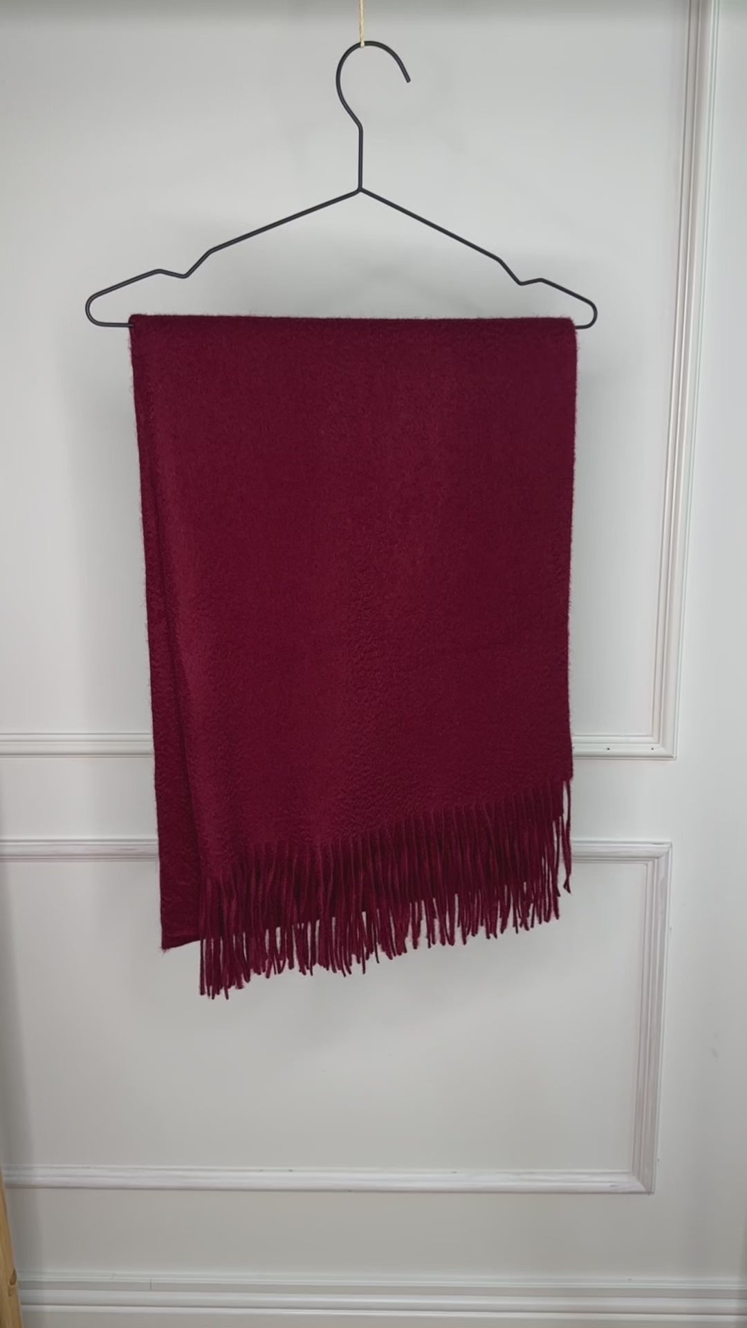Stilfuldt og elegant damesjal med frynser i vinrød. Vores sjaler i 100% Cashmere er lavet af den fineste kvalitet Cashmere uld, som er kendt for sin blødhed, varmeevne og åndbarhed. Cashmere er en type uld, som er opnået fra Cashmere geden, og er kendt for at være en af de blødeste og mest luksuriøse typer af uld.