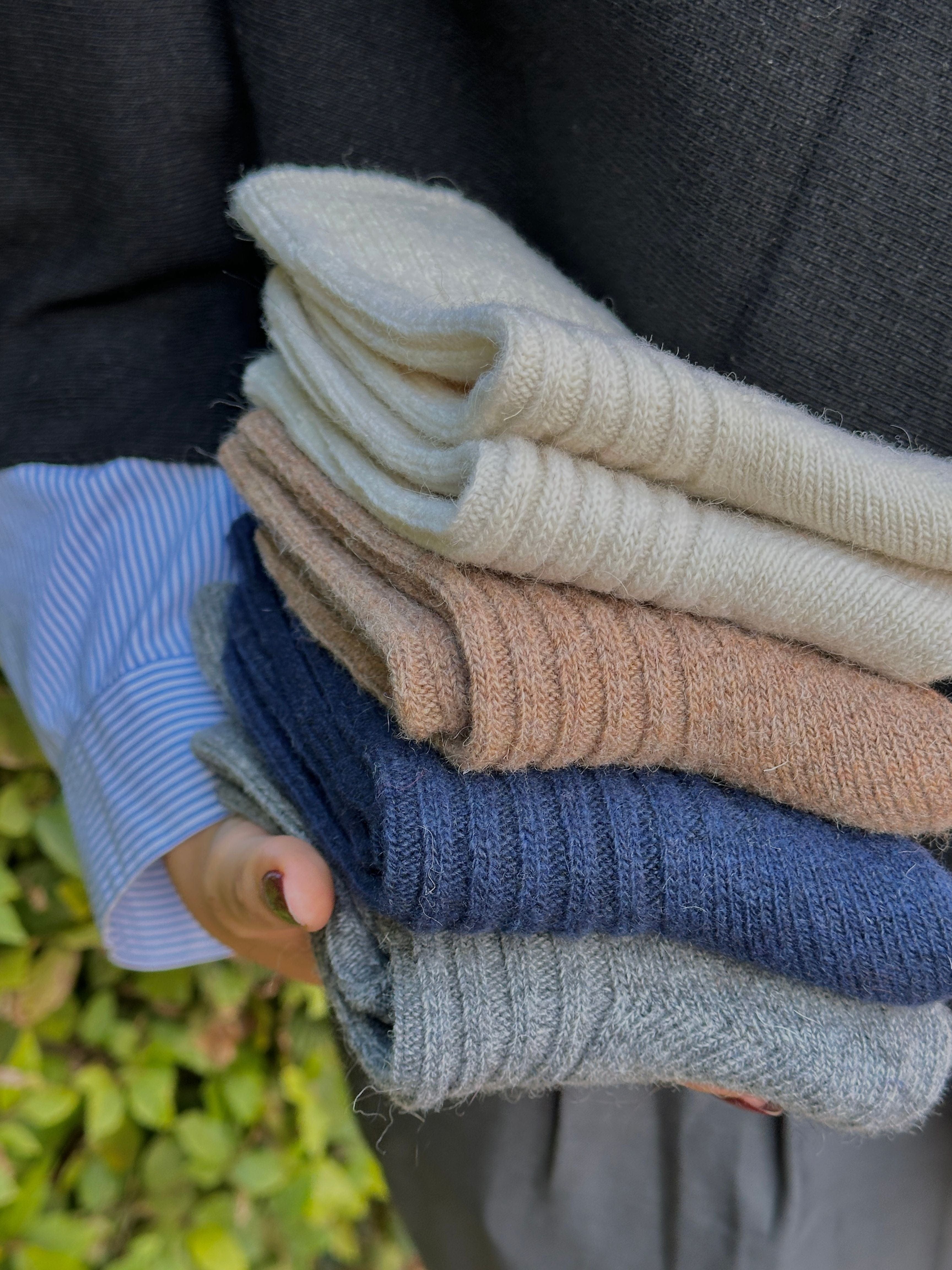 Uldsokker i alpacauld er for os uundværlige, fordi de forener det bedste fra to verdener: den traditionelle nordiske hygge, vi alle kender, og den luksuriøse kvalitet, som alpacauld har været værdsat for i århundreder. Resultatet er sokker, der holder dine fødder varme året rundt – bløde, åndbare og med en pasform, der føles perfekt hele dagen.