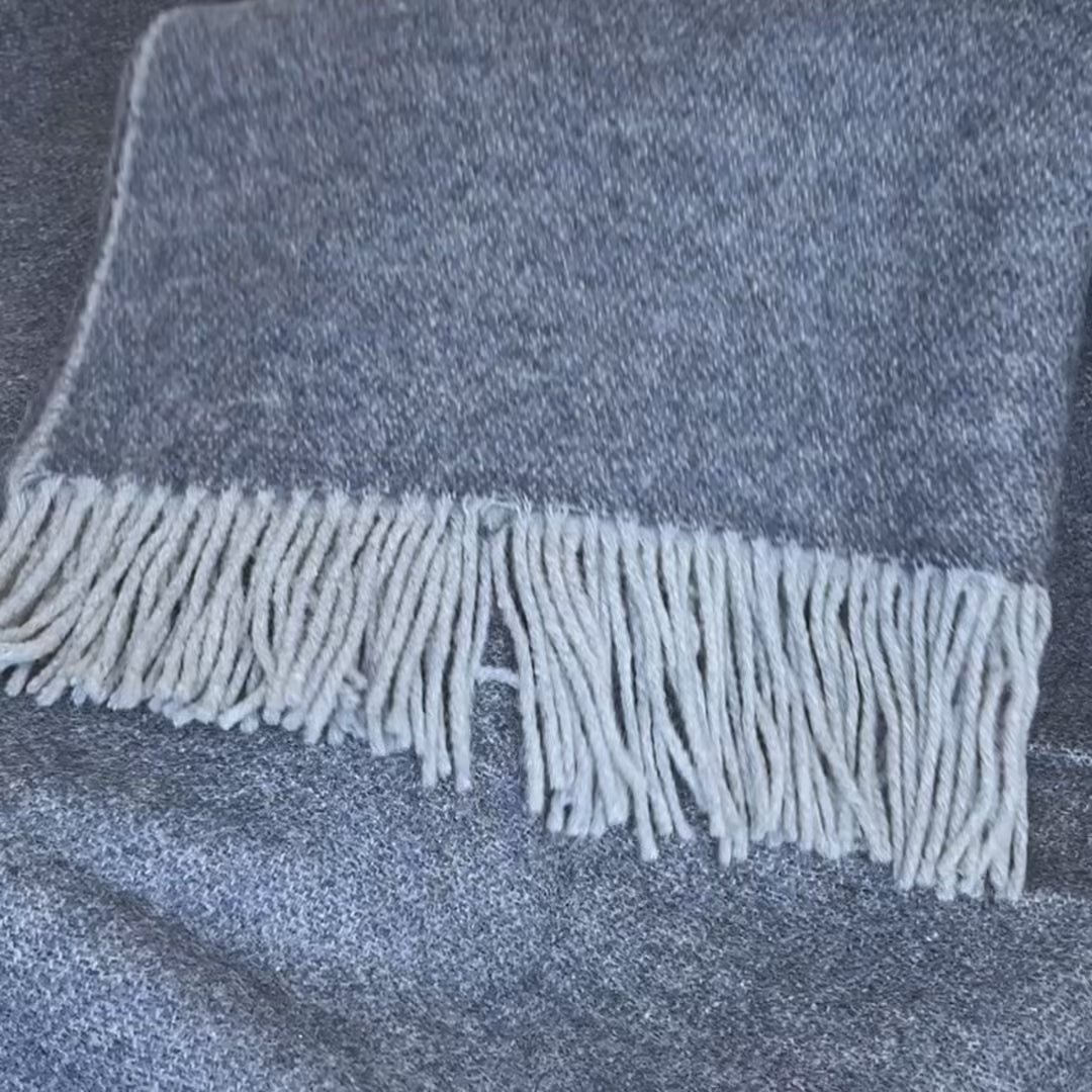 Uldplaid i 80% Merinould - Dobbeltsidet Blå (140x200 cm).