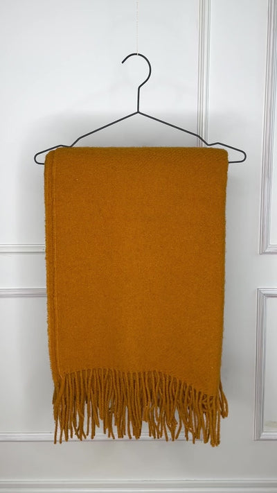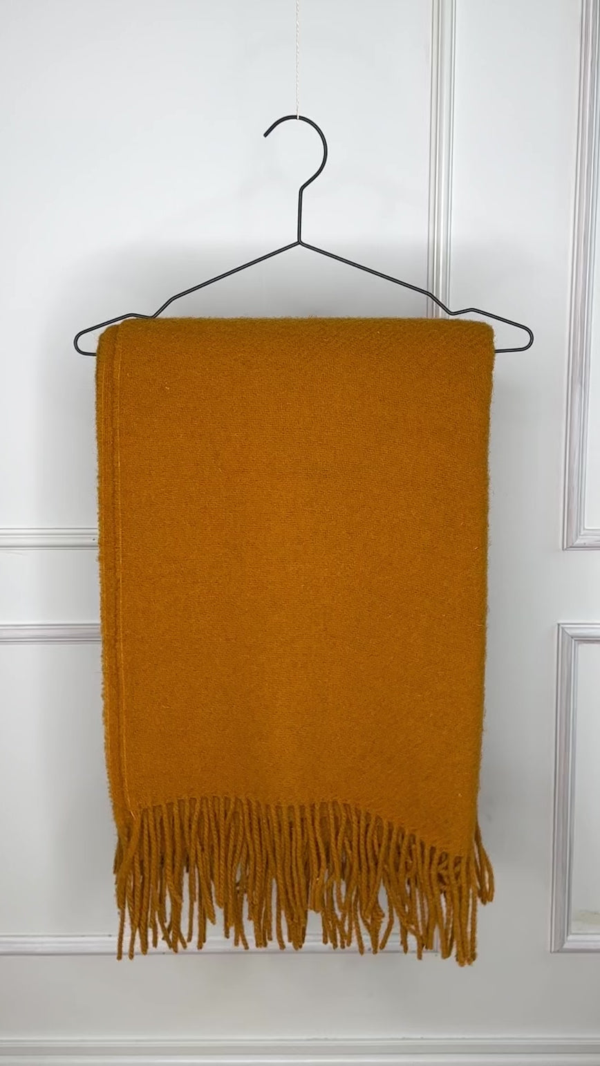 Mustard yellow wool plaid from Uldplaiden in a soft, dense weave. Made from 100% pure New Zealand wool , which naturally regulates temperature and keeps you warm. The warm mustard color with a slight melange expression provides a calm, modern accent in the living room, bedroom or on the terrace.