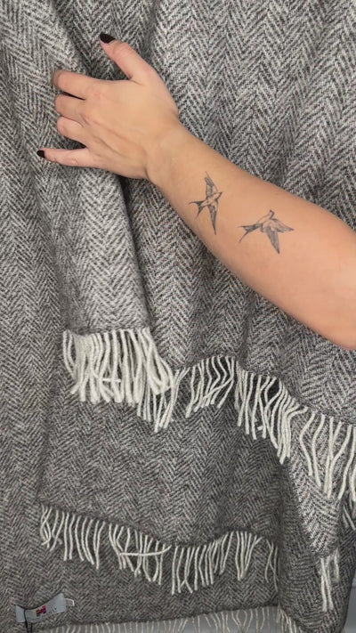 Øko uldplaid i 100% uld - Pale grey m. sildebensmønster (132x190 cm)