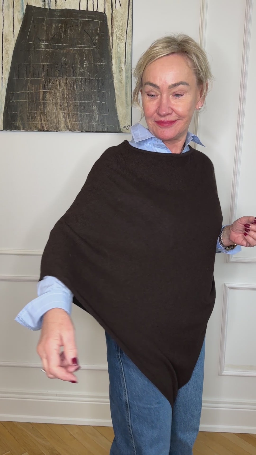 Italiensk poncho i 5 % kashmir och 25 % merinoull. Mjuk, lätt och varm med en elegant design – perfekt för både vardagsbruk och speciella tillfällen.