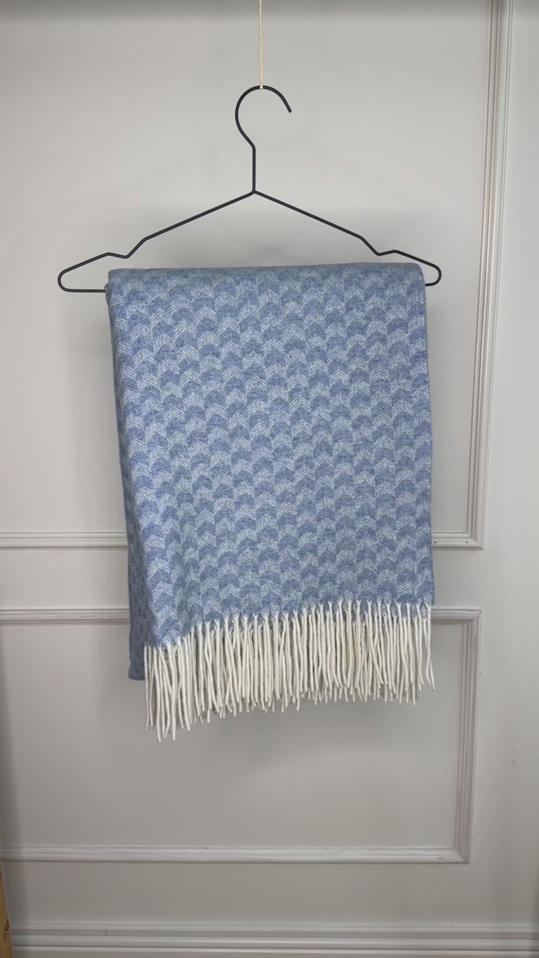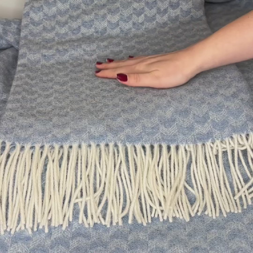 Uldplaid i 10% Cashmere - Lyseblå m. mønster(140x200 cm)