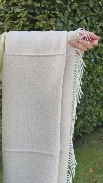 Uldplaid i 100% baby alpaca uld - beige eco m. sildebensmønster