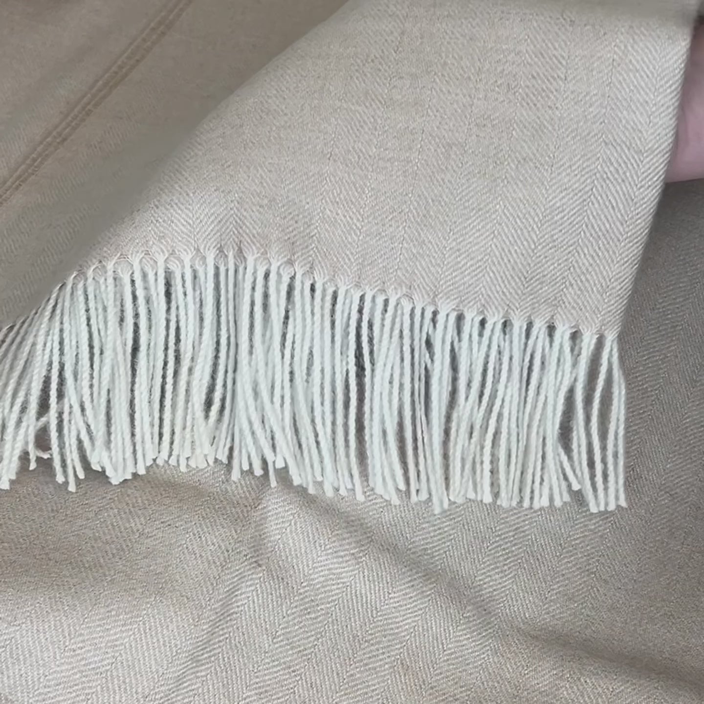 Uldplaid i 100% baby alpaca uld - Beige m. sildebensmønster (130x180 cm)