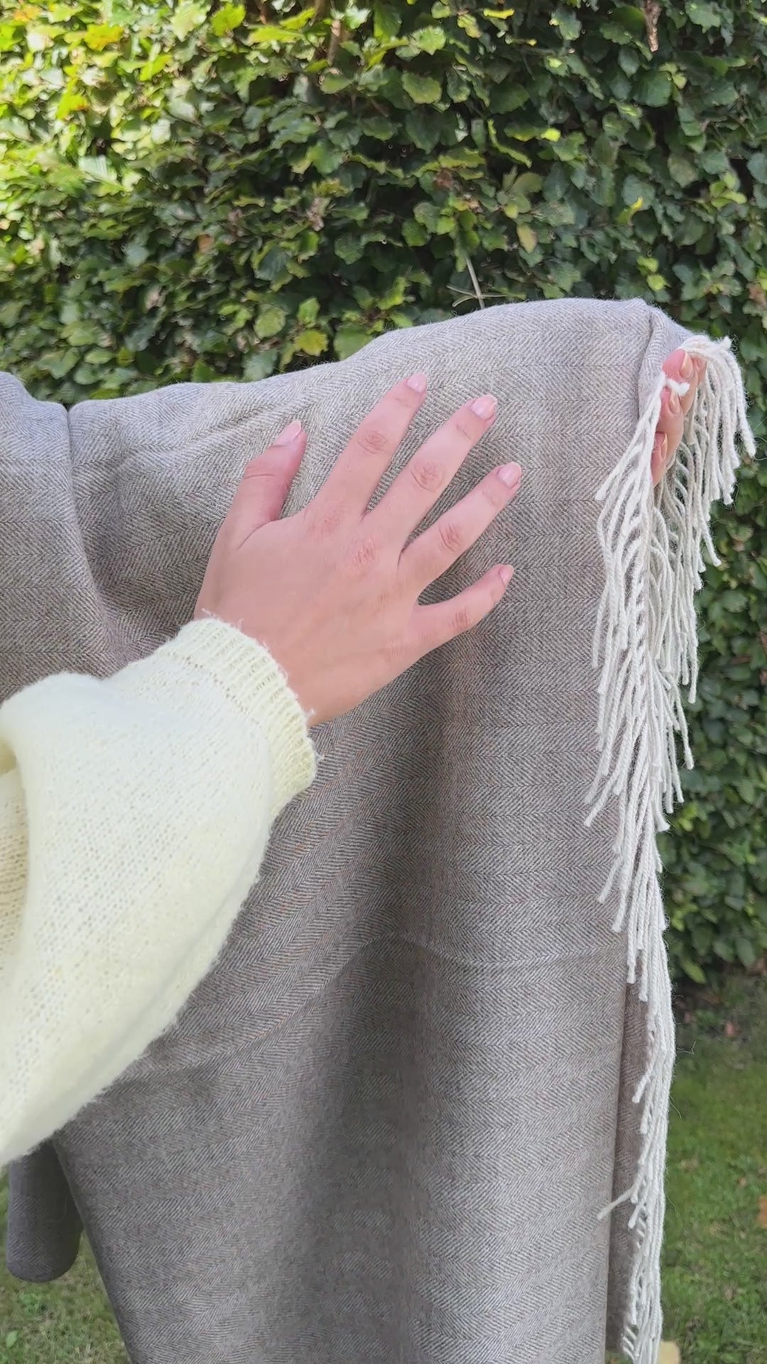 Uldplaid i 100% baby alpaca uld - sand m. sildebensmønster
