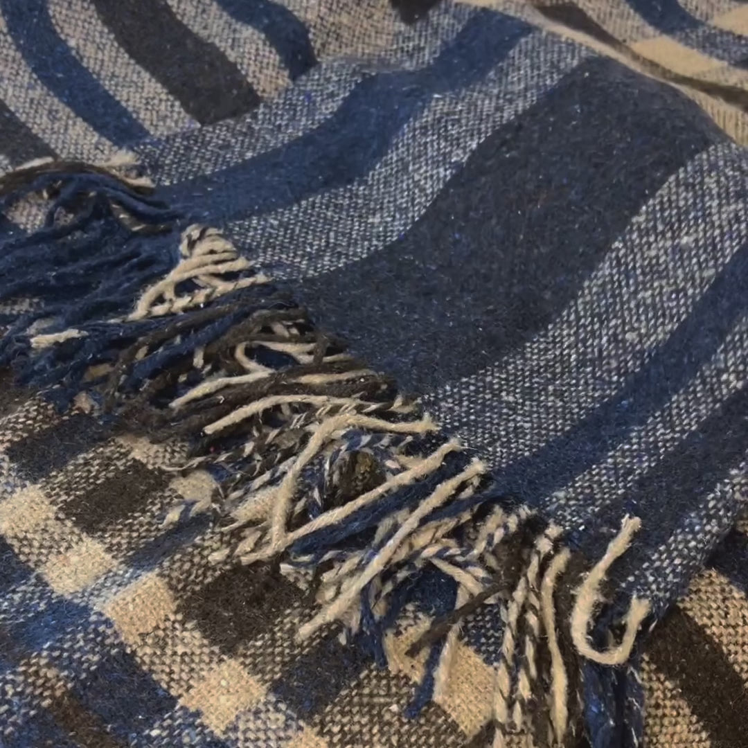 Uldplaid i 100% Recycled - Blå/Brun (140x200 cm)