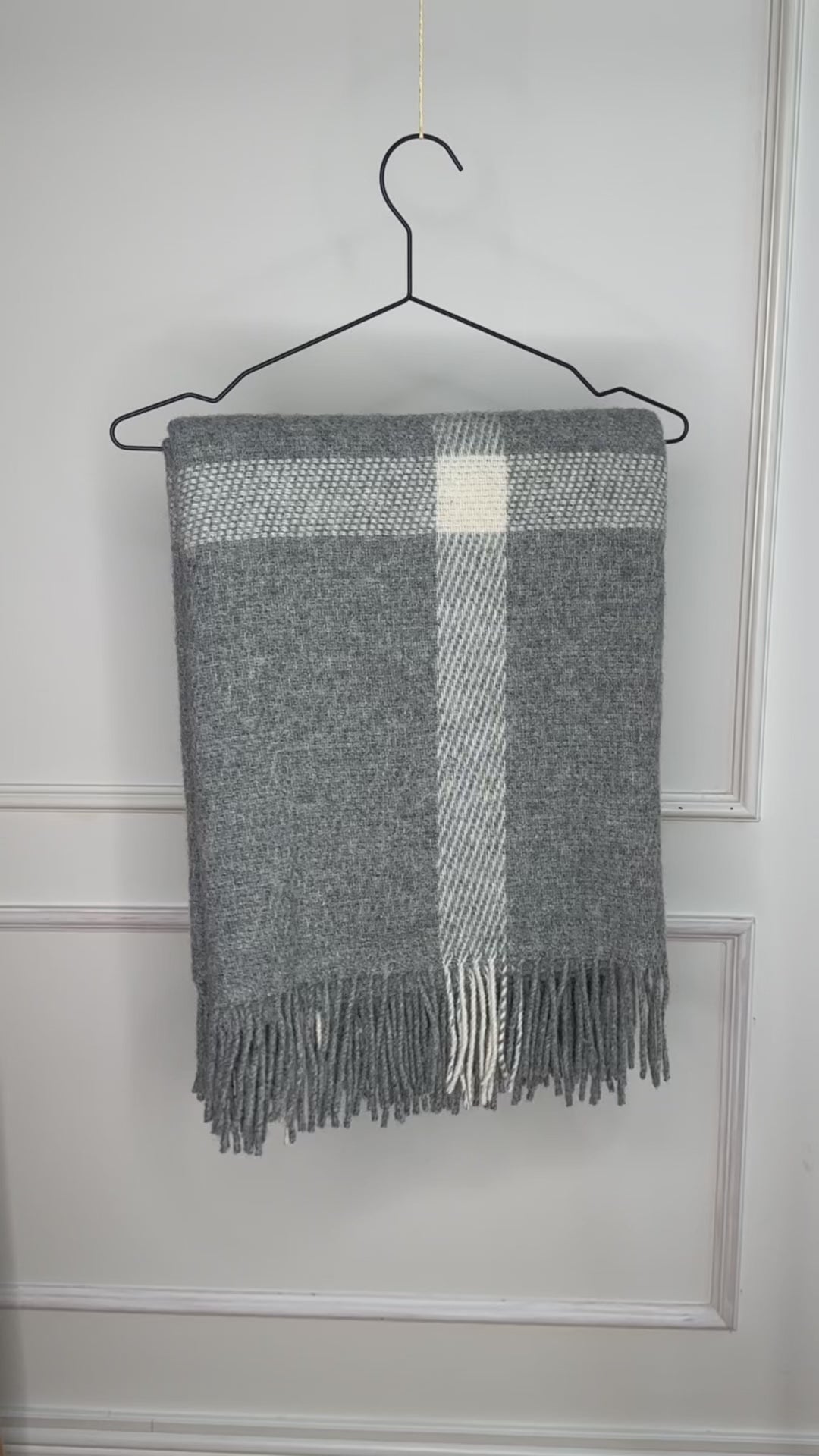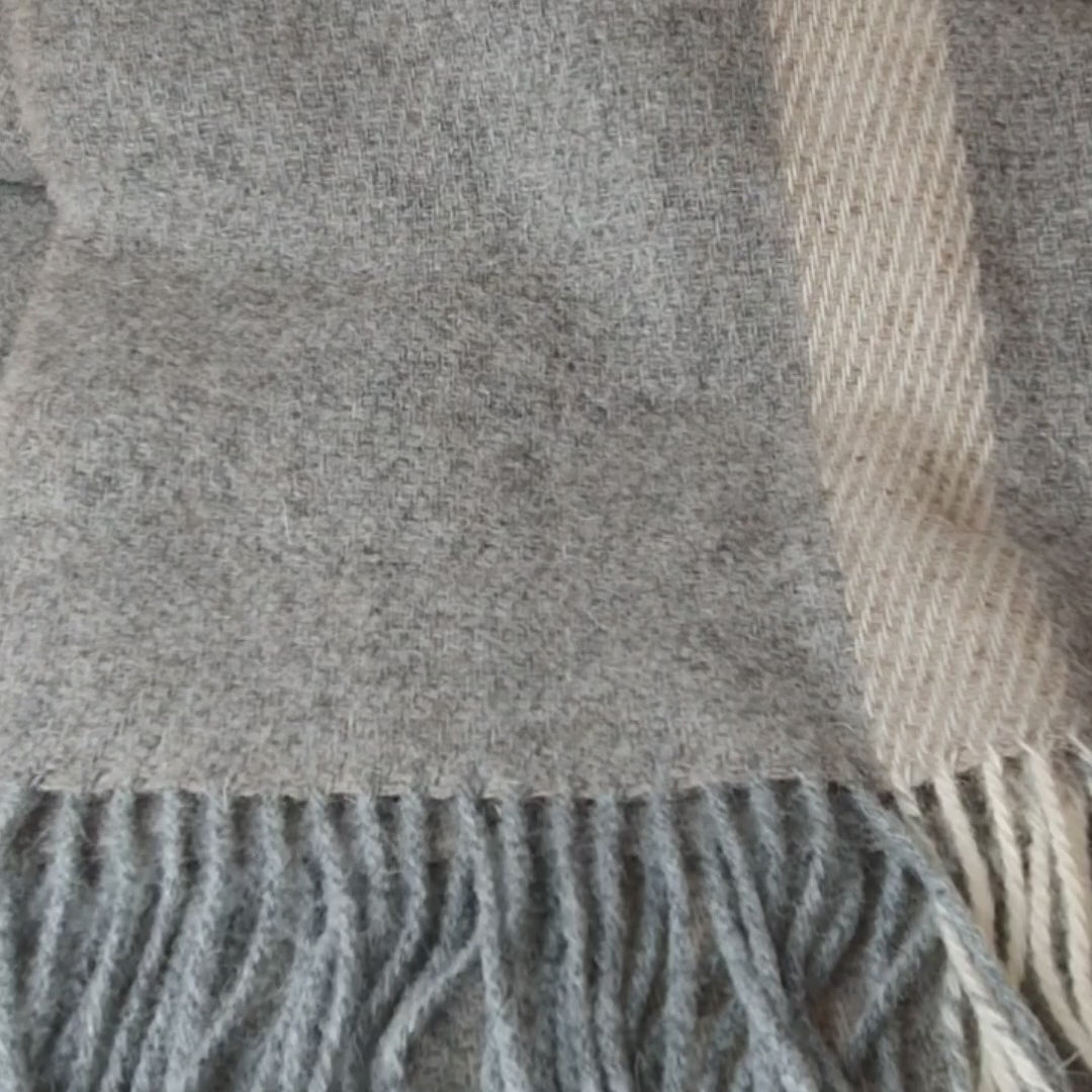 Uldplaid i 100% uld - Lysegrå m. Striber/tern (140x200 cm)