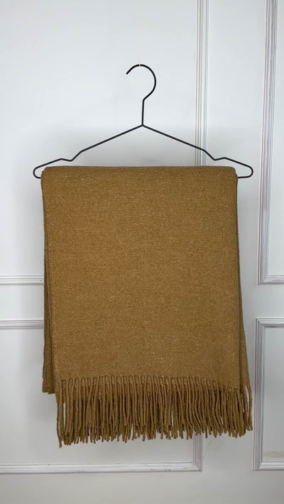 Vacker ullpläd med Dubbelsidig färg i kamel . Uldplaiden har designat och låtit producera denna pläd i merinoull i Ukraina, en kvalitetsull som naturligt anpassar sig till kroppstemperaturen och behåller värmen bekvämt. Den djupa, vackra kamelfärgen ger en lugn och tidlös accent i vardagsrum och sovrum.